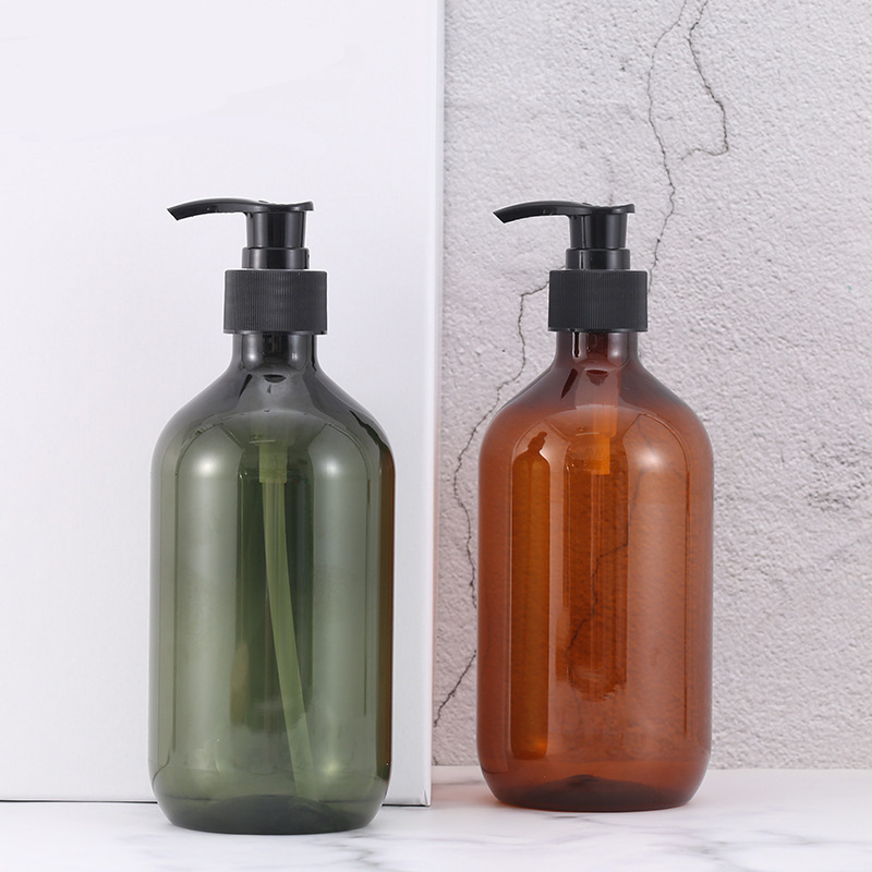 【カスタマイズ】500mlローションプレスボトルpet入浴剤洗浄ボトル500g茶色グリーンシャンプーボトル