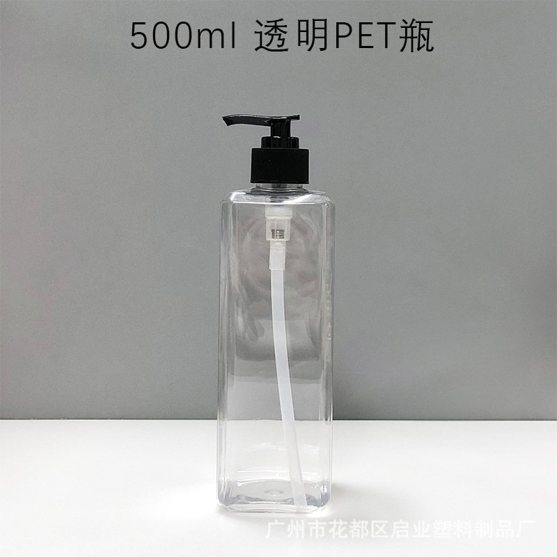 【現品】500ml透明四方瓶pet吹瓶洗浄分離瓶プレスポンプヘッド大容量印刷