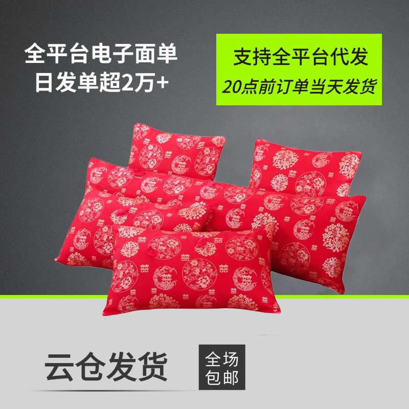 新しい綿の結婚式の刺繍入り枕コア枕、崩れない首枕、大人の高級赤い結婚式の持参金枕