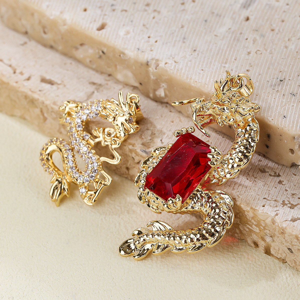 中国風生肖龍銅ペンダントマイクロジルコンdiyネックレスアクセサリー卸売り