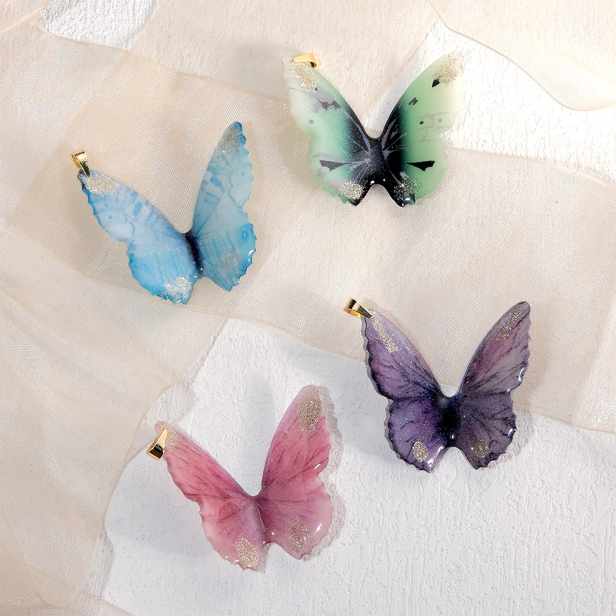 立体金箔グラデーション樹脂蝶diyアクセサリーストラップ
