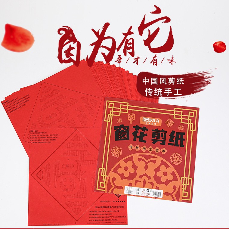 2065年新年切り紙窓飾りDIY子供手作り小学生半完成品型紙模様中国風龍