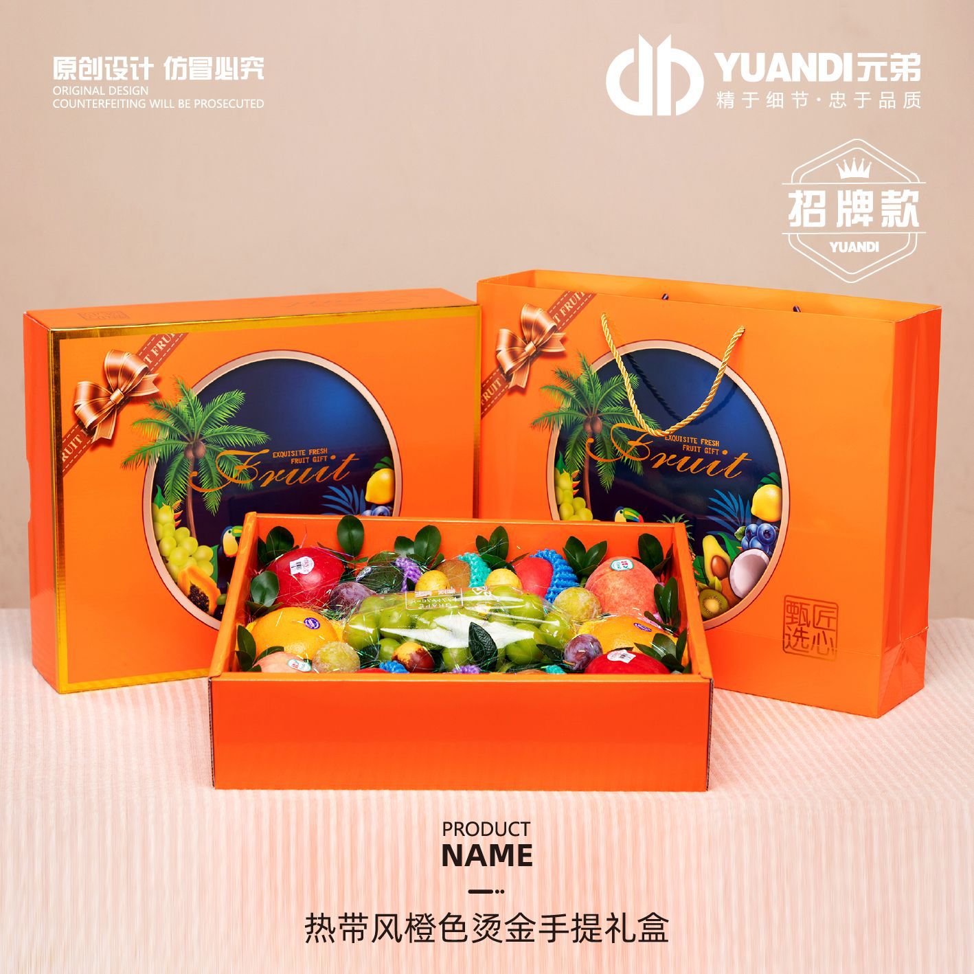 愛天元・熱帯風オレンジ色箔押しギフトボックス高級果物包装ギフトボックス
