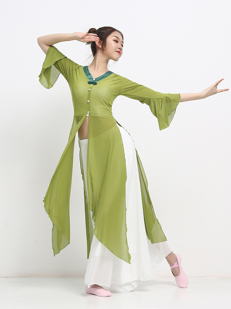 古典的なダンス2022の新しいスタイルのガーゼのふわふわした服装は中国のダンスのベリーダンスのスーツの練習服の女性を演出します。
