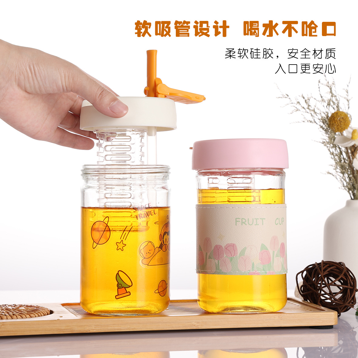 ストローグラス女子高颜値ins風学生カップルカップ携帯カップ店慶販促ギフトカップ