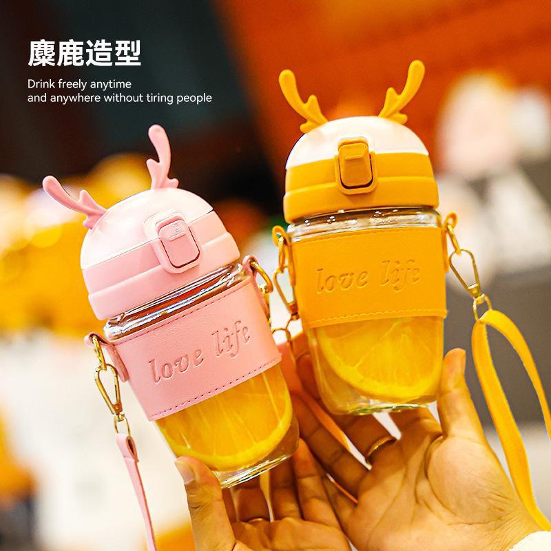 萌え系かわいい子供漫画ストローコップ男女学生斜め掛けアウトドアグラス高颜値プレゼントコップ