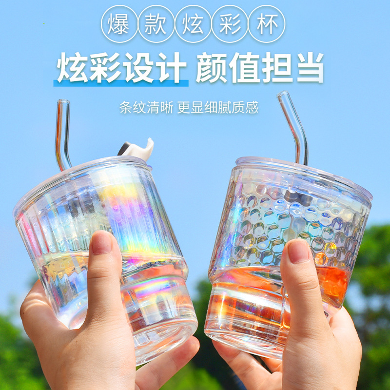 クリエイティブカラフルストローガラスカップ男女ins風学生カップルカップコーヒーミルク朝食ギフトカップ
