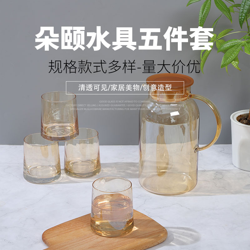 メーカー卸売り耐熱ガラス冷水筒大容量家庭用ガラス水器具セット高ホウ素シリコン大容量冷水筒