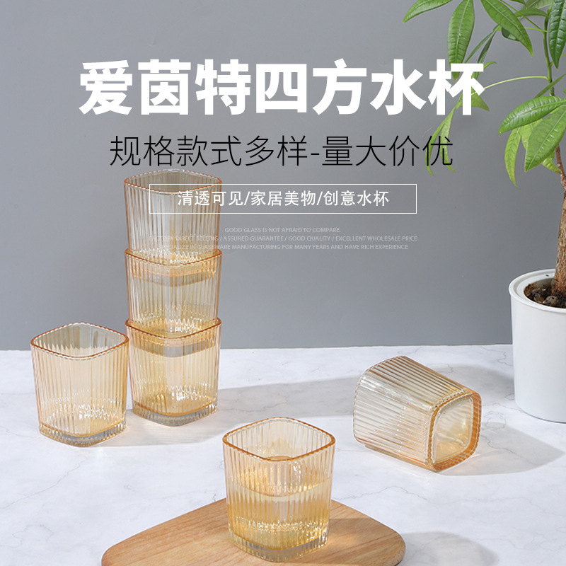 高級感氷河紋大容量角型コップ軽豪華牛乳カップコーヒーカップ創意六セット卸売り