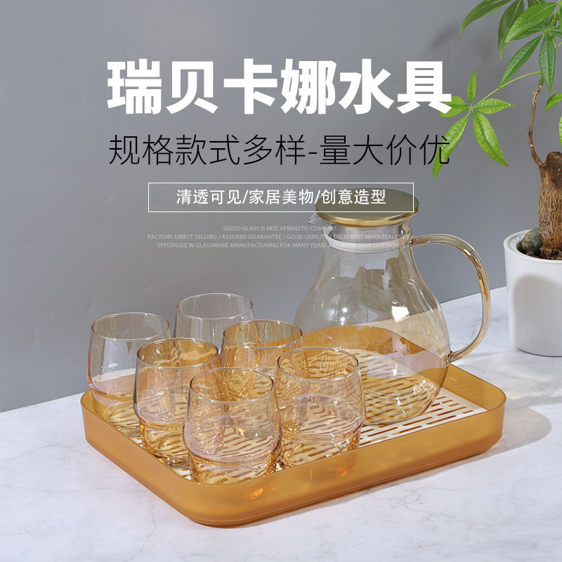 接客家庭用高ホウ素シリコンガラス冷水筒大容量白湯筒創意冷水カップセットダイヤモンドポット