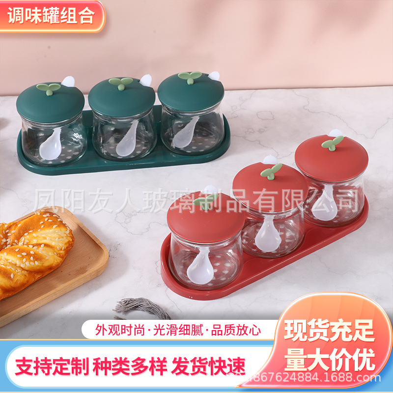 萌芽台所用品調味料瓶家庭用密封収納塩缶調味料缶分格スプーン蓋一体調味料瓶