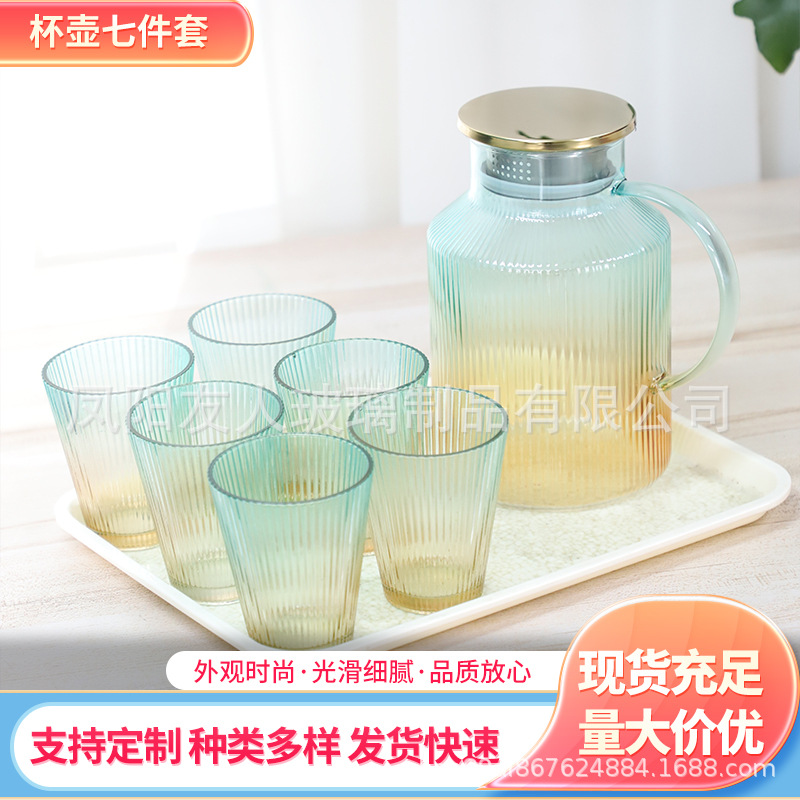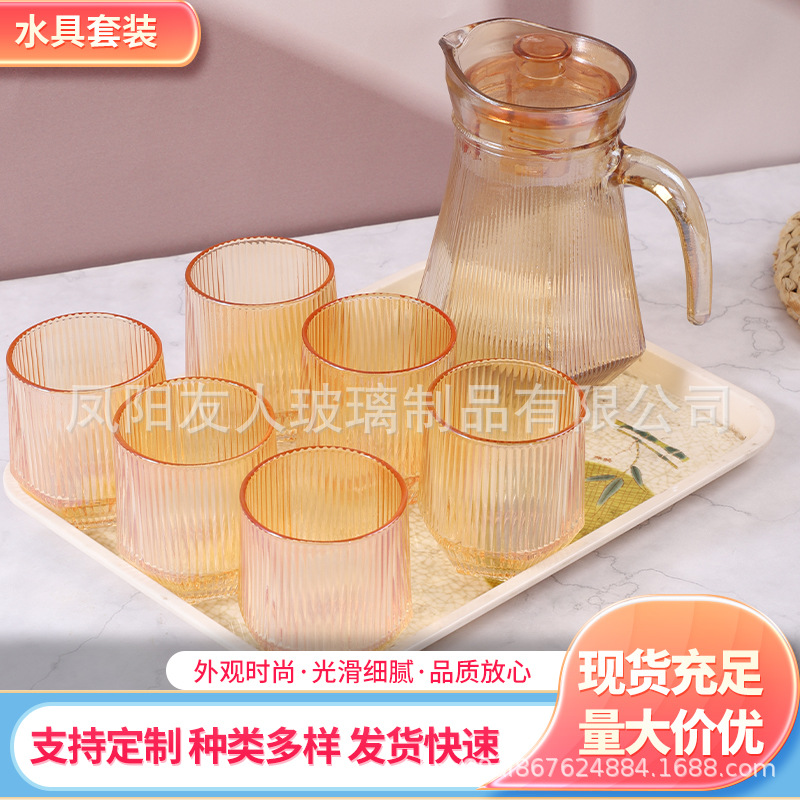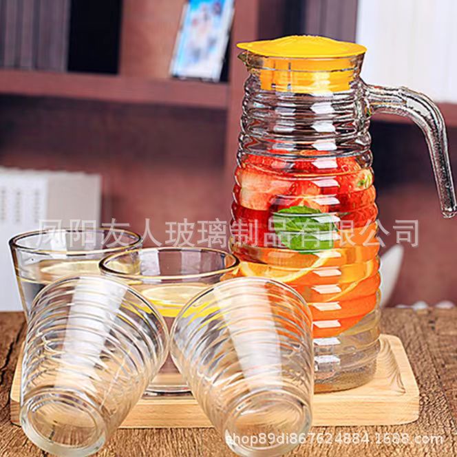厚手大容量高鵬水具高温家庭用ビジネス水具セット縦紋茶器ジュースティーポット