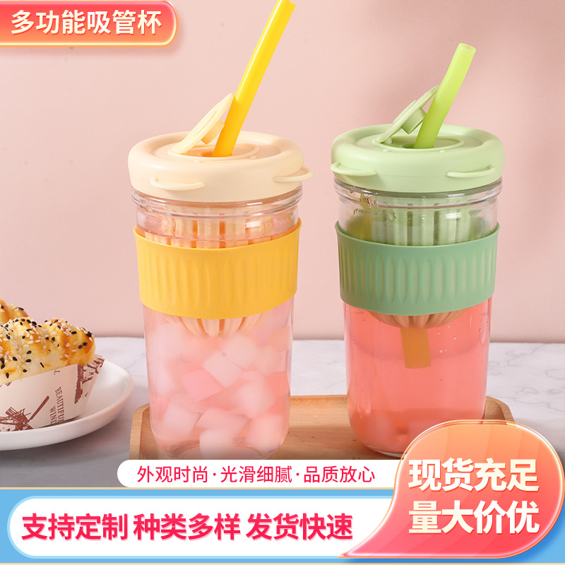 ガラス熊菱格はコップを厚くしてガラスの大容量のガラスのコップに蓋をしてストローの高い顔の値のinsのコップを持ちます。