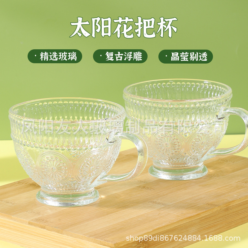 レトロな太陽の花のガラスは杯の朝食の杯の牛乳の杯のコーヒーの杯を浸して厚いジュースの杯の卸売りの大容量を厚くします。