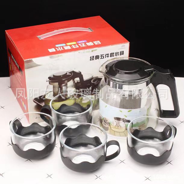 ティーポット5点セットガラスティーポット養生ポット大容量家庭用フィルターメーカー卸売りセット茶器