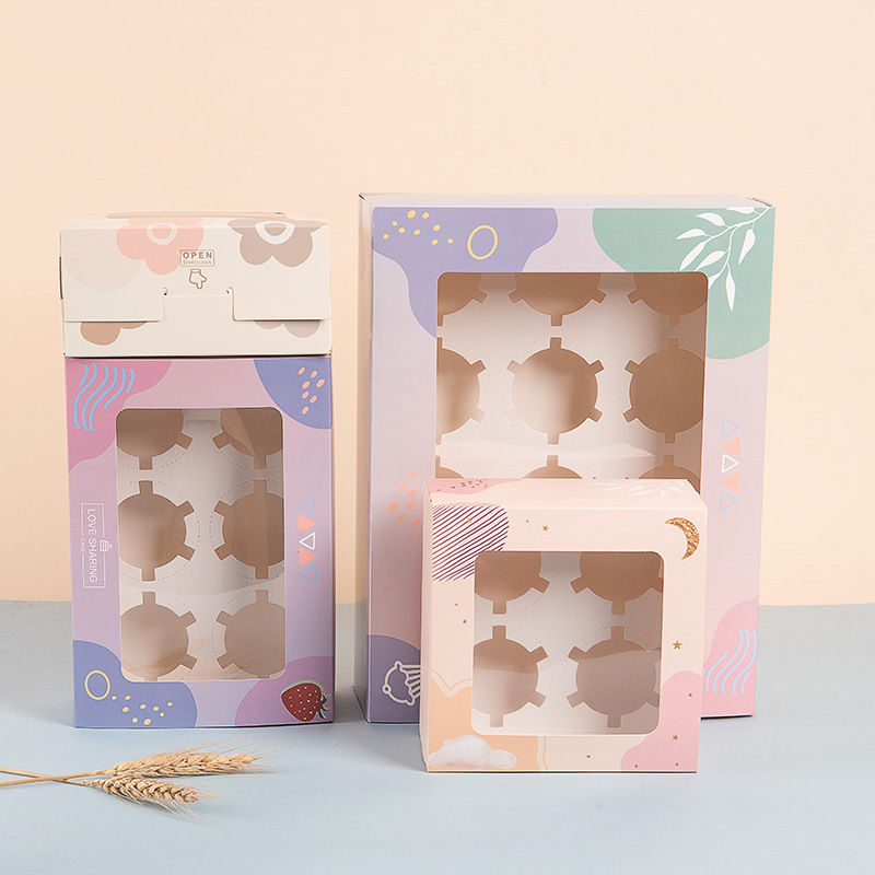 現物卸売り紙コップケーキ箱2 4 6 12格透明窓開け箱マフィン箱カップケーキ包装箱