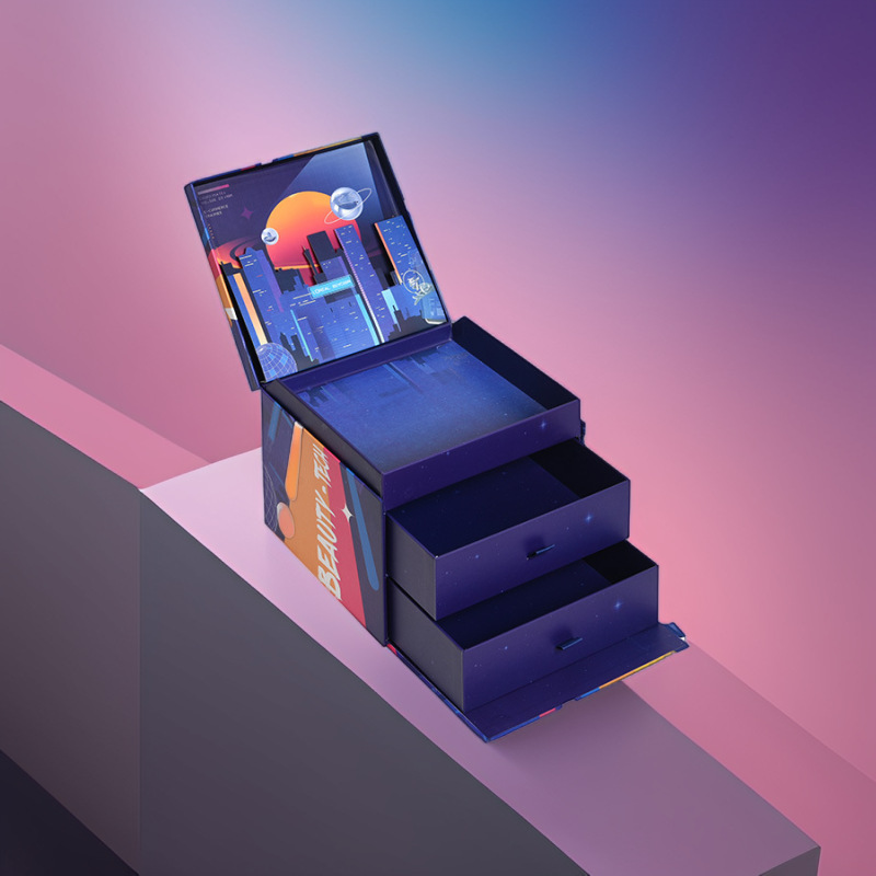 クロスボーダー専用のカスタマイズされた高級化粧品引き出し箱のギフトボックスの立体画三層ブランドのギフトボックスの空き紙箱