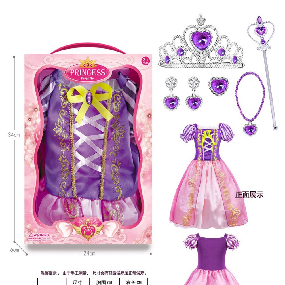 クロスボーダーの王女の透明な水晶の靴の紗のスカートのハンドバッグの王冠のアクセサリのスーツの誕生日の舞踏会はまごとを装います。
