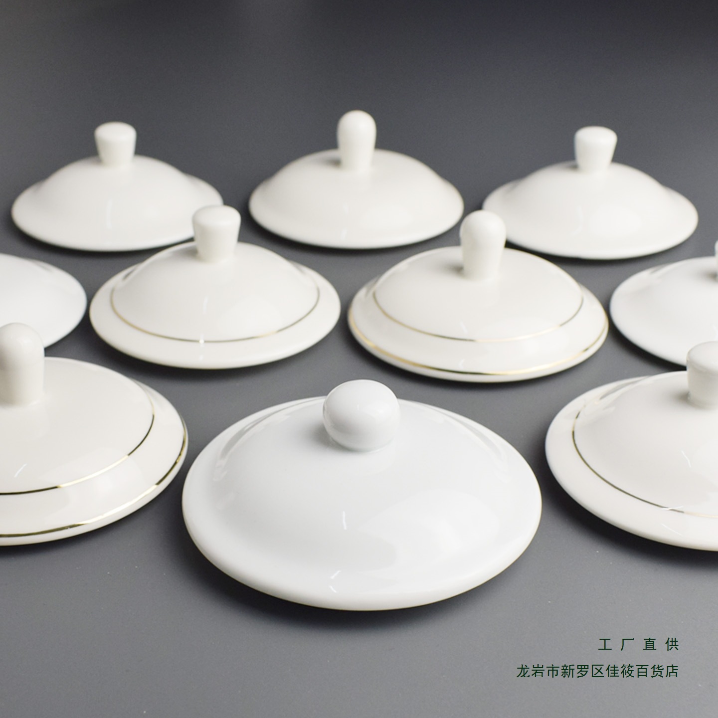 金边茶杯盖陶瓷圆形纯白色防尘会议室经典带手柄手把水杯盖子