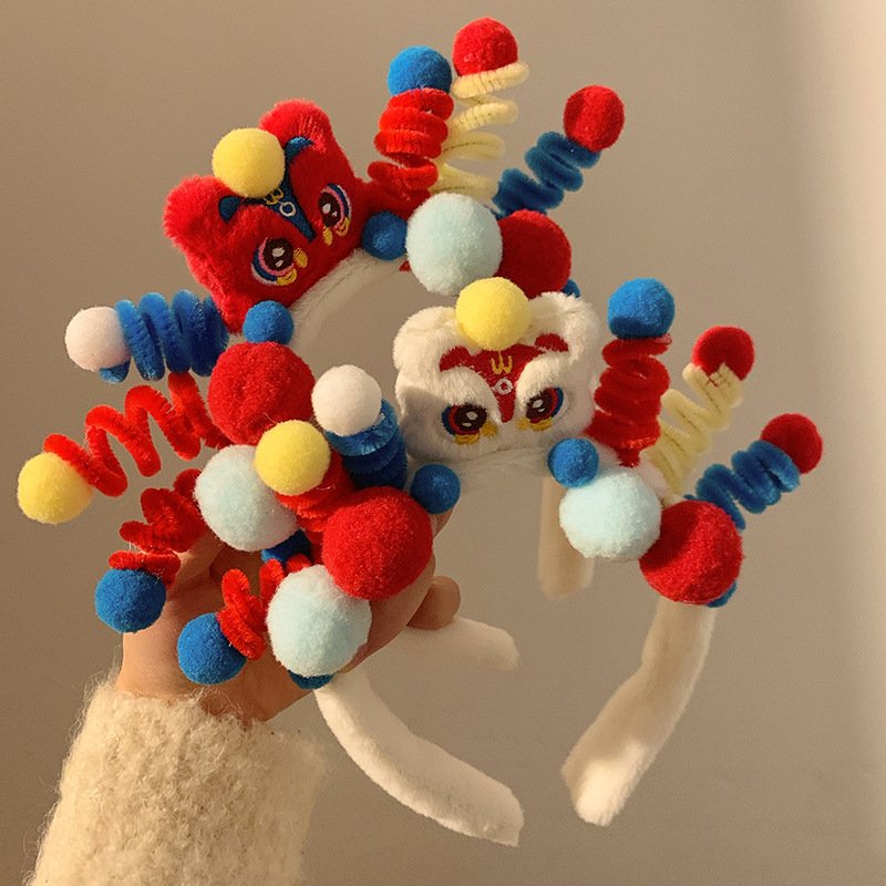 新年の国潮が目を覚ますライオンのぬいぐるみのカチューシャが可愛いです。
