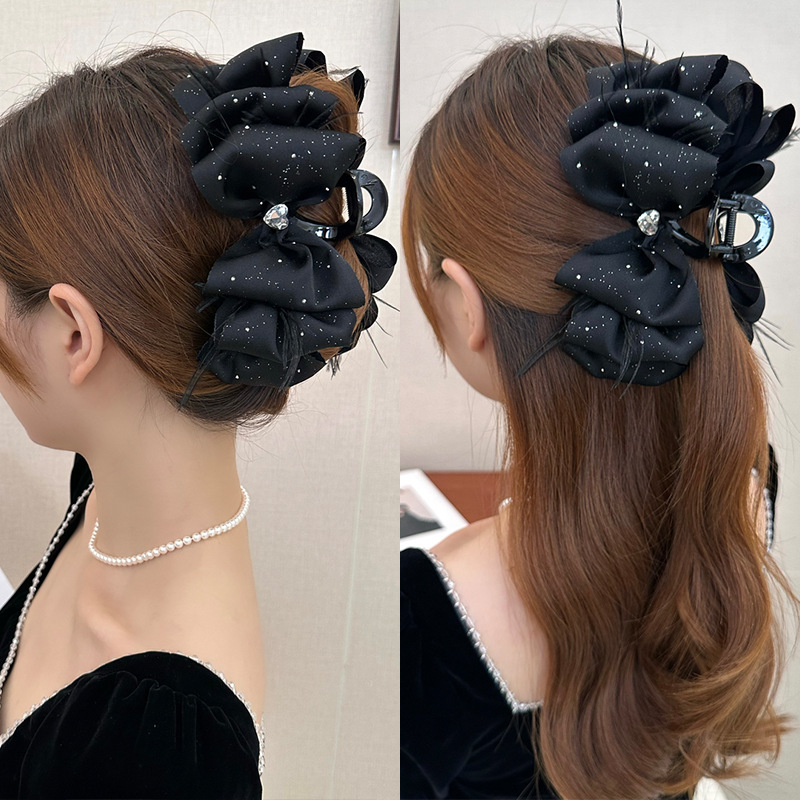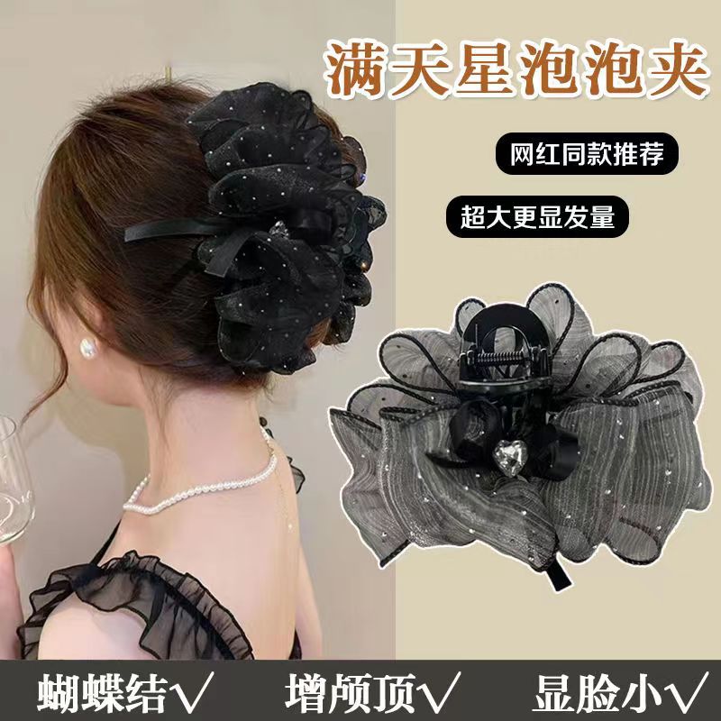優雅な網の糸の水のドリルの蝶結びの泡は女性の高級感の後頭部のサメのクリップの頭飾りの髪のクリップをつかみます。