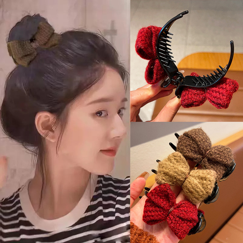 秋冬のカレー系の超仙のニットの蝶結びの団子の頭は甘い頭をつかんで飾ります。