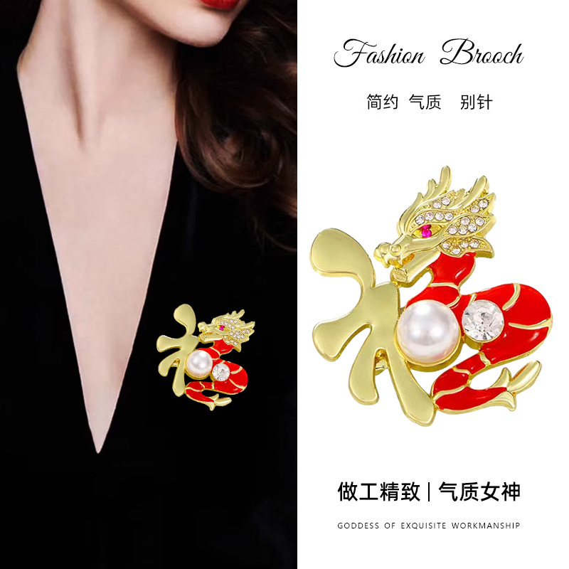 2024年新年龍年ブローチ創意福字ピン本命年バッジお祝い中国風高級胸花飾り