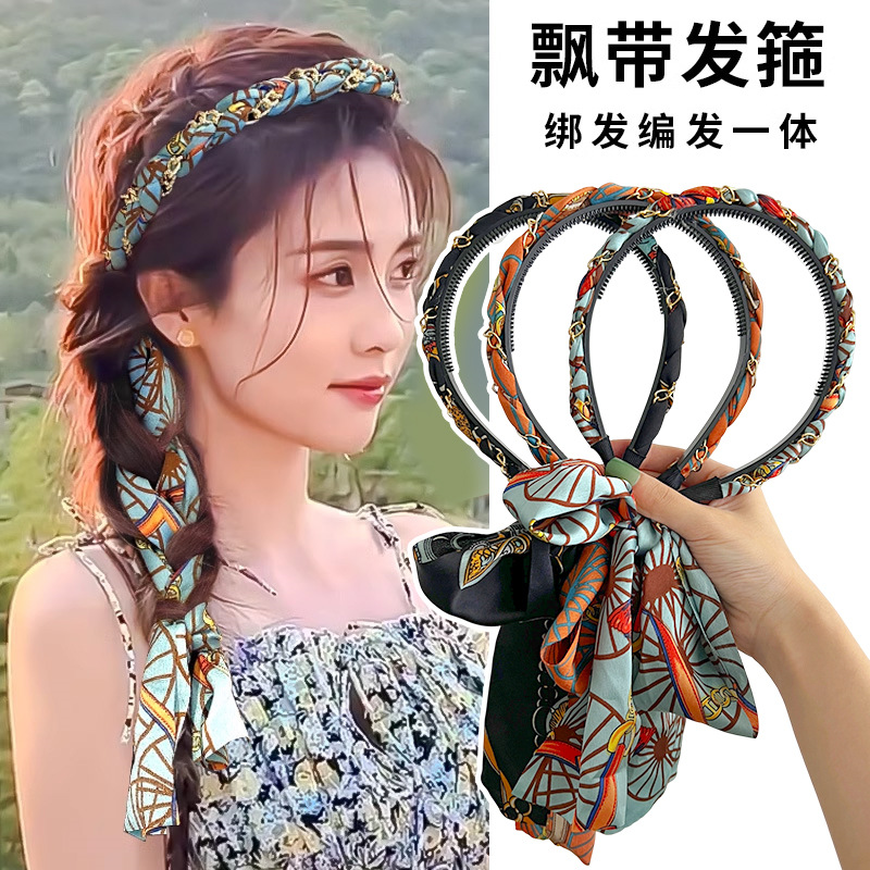 髪のカチューシャの女性チェーンを縛って、夏のカチューシャ2023新作のシルクのカチューシャを編みます。