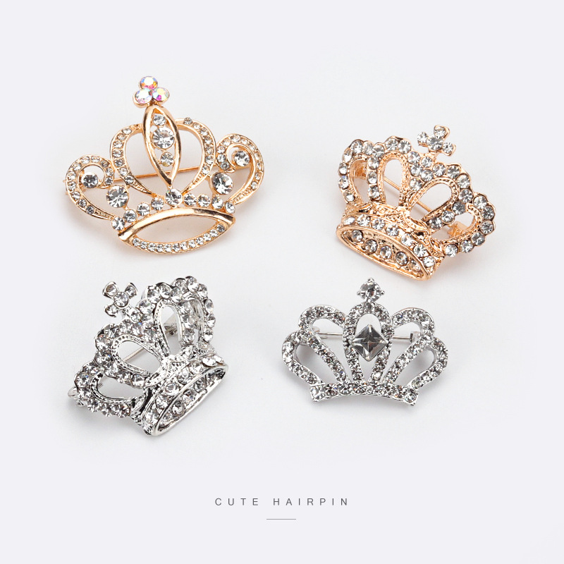 ブローチの女性の装飾の気質の高級なクラウンの小さい襟の針は胸の花のセーターのスーツのピンの水晶の襟のクリップを詰めます。