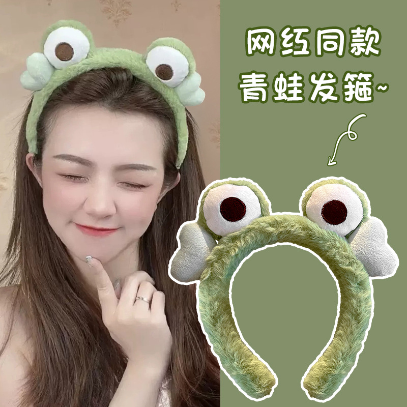 カエルのぬいぐるみのカチューシャの女性は秋冬に顔を洗って髪を束ねます。髪が滑り止めのカチューシャのネットの赤い2022年の新型のカチューシャです。