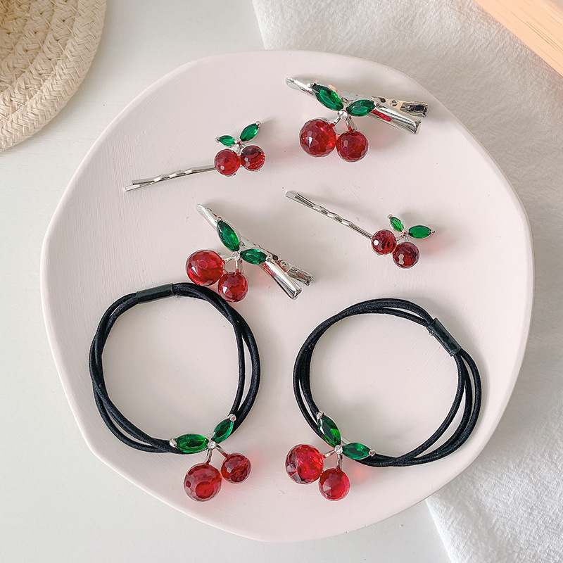 かわいい耐久性のある赤いさくらんぼの皮筋のひもの小さい清新な髪の輪の森系のシンプルな気質のinsネットの赤い髪のクリップ