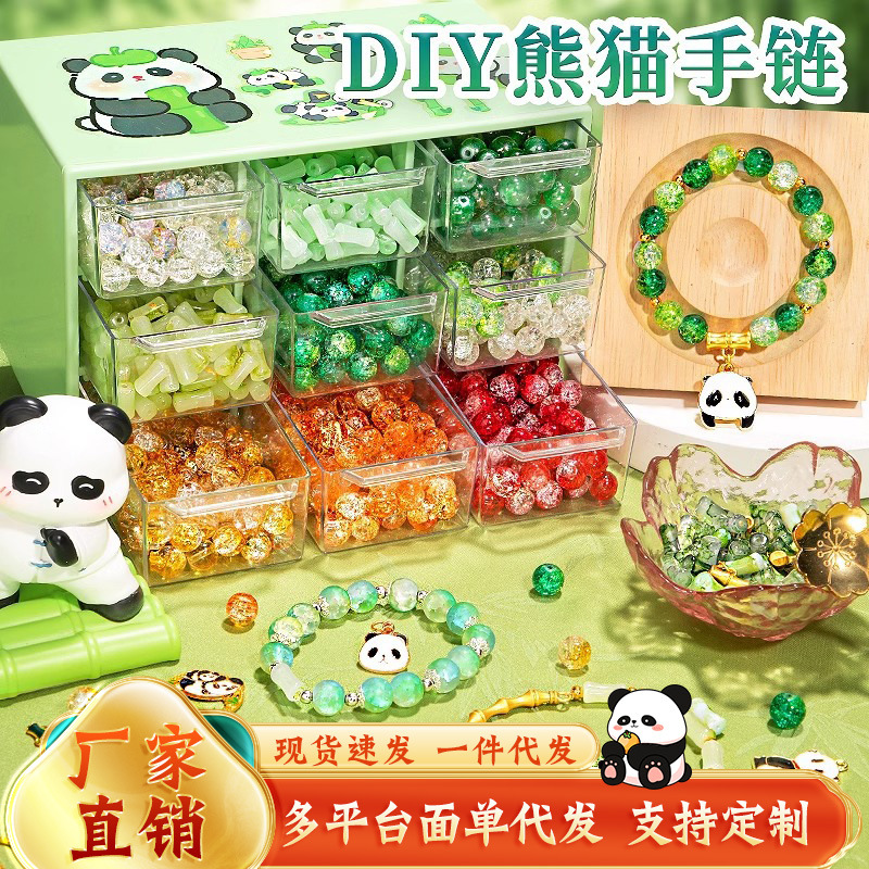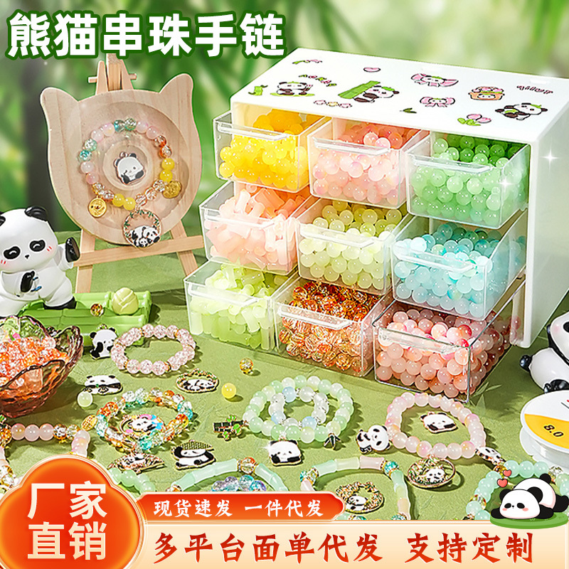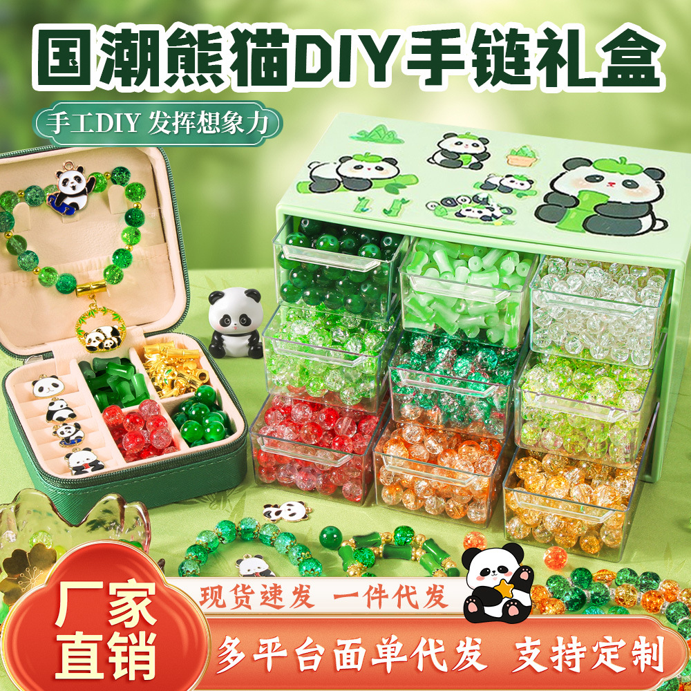 国潮パンダビーズdiyアクセサリー材料女の子誕生日プレゼント女の子玩具セットビーズブレスレットギフトボックス
