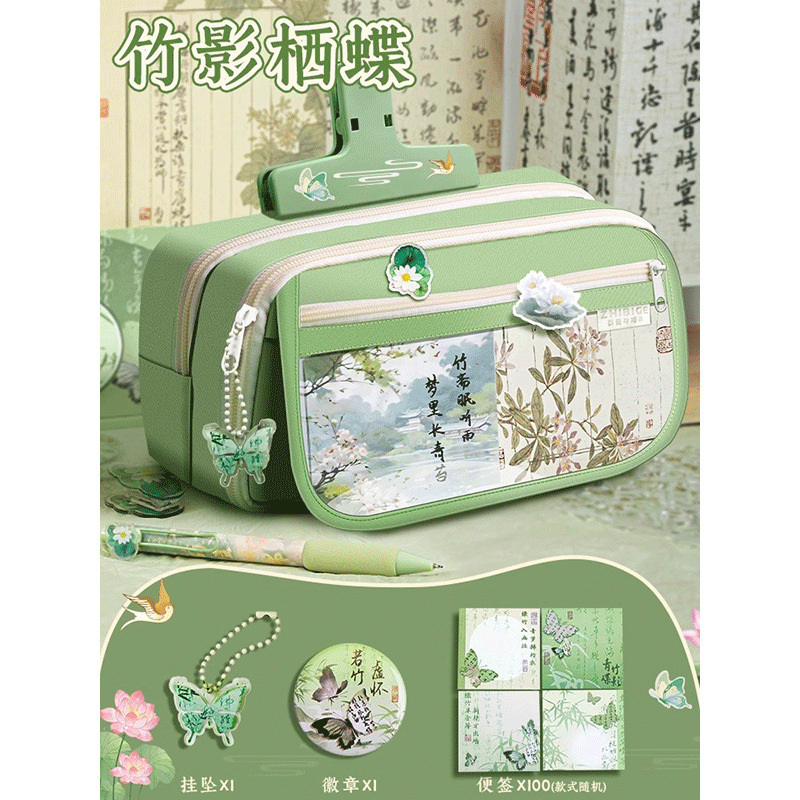 国風筆袋セット高颜値大容量男子女子学生学習用品透明鉛筆ケース古風お土産