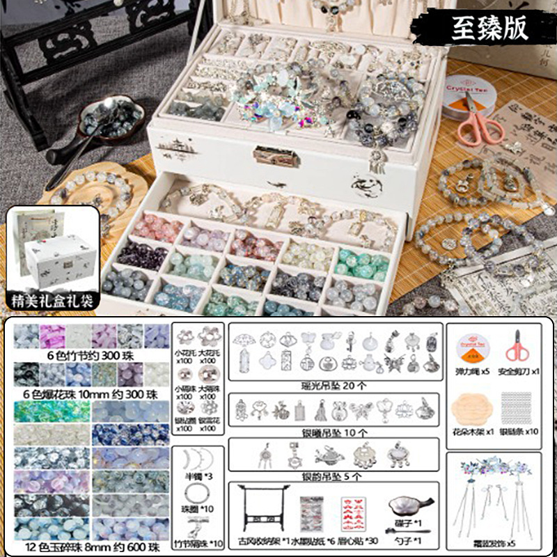 子供のブレスレットの数珠の手は手作りのdiy材料の女の子の古風の国風のおもちゃのプレゼントの箱の女の子を刺してビーズを通します。