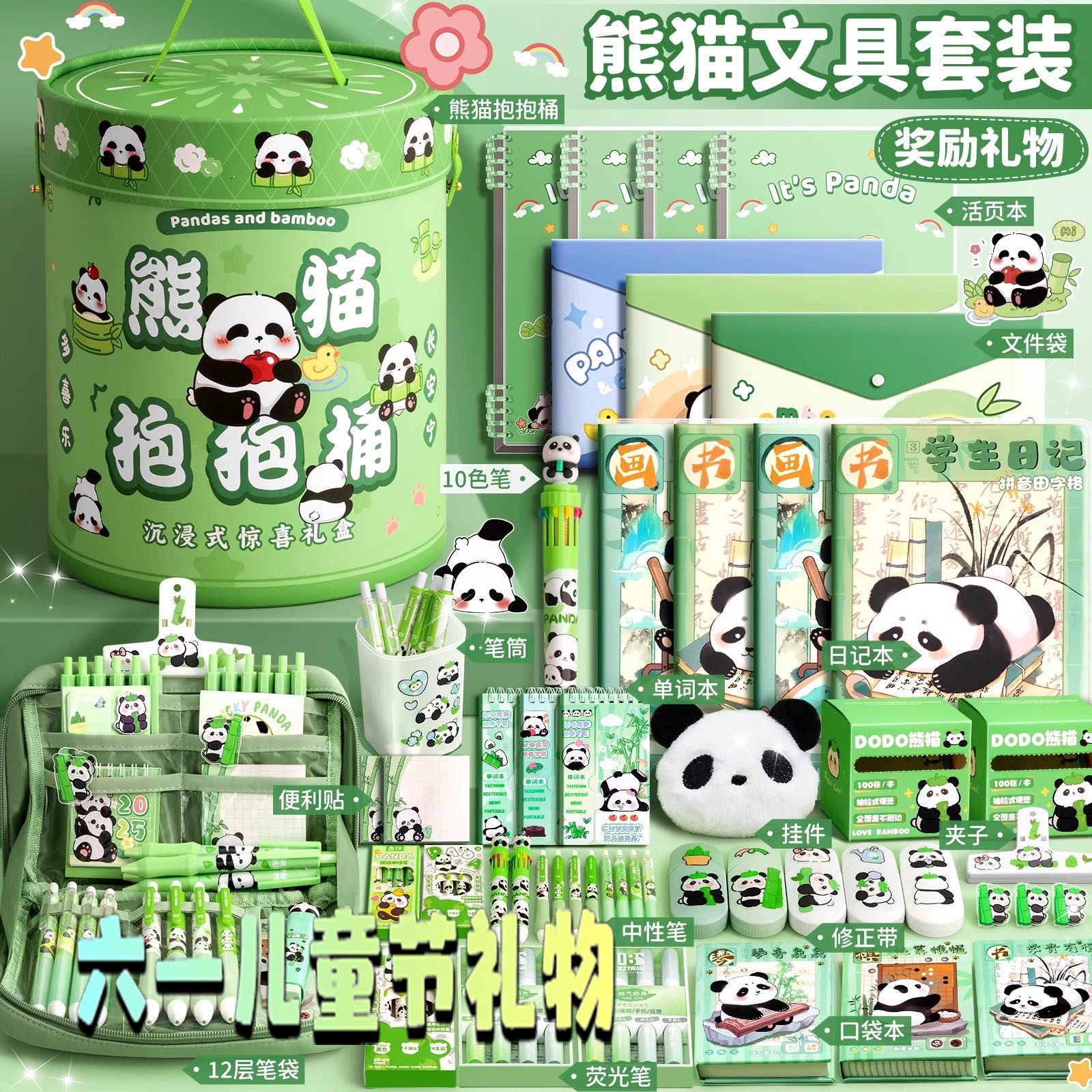 六一子供の日パンダ文房具抱っこ桶ギフトセット誕生日プレゼント男子学生学習用品