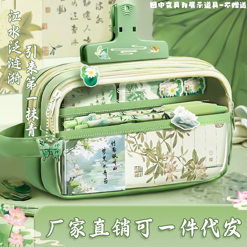 国風の筆の袋の透明な鉛筆の箱の新しい中国式の文房具の袋の古風の新型の高い顔の値の超大きい容量の透明な卸売り