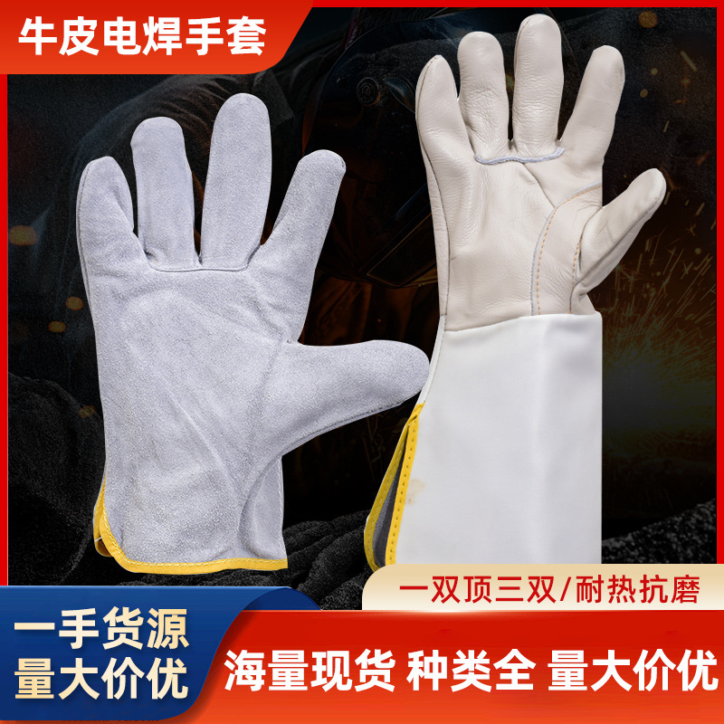 全牛革電気溶接手袋溶接獣二層厚さ溶接断熱耐摩耗性延長溶接工全皮柔軟快適
