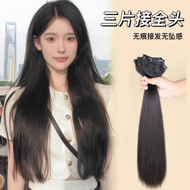 髪のボリュームを増やすワンピースの超薄型、落ちない、ふわふわの黒のロングストレート人工毛、目に見えない跡のないヘアエクステンション