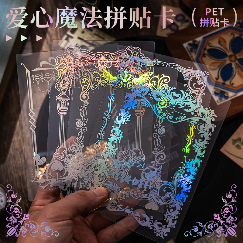 PVCレーザーカラー素材バッグinsヨーロッパ風枠手帳写真装飾透明カードコラージュ小貼り画