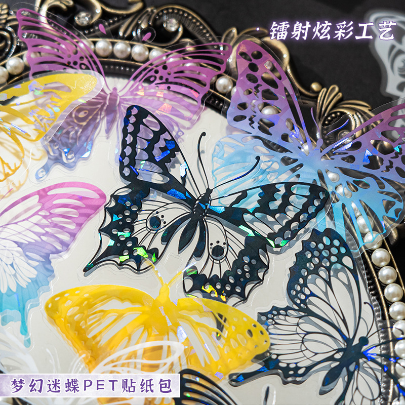 Petステッカーは蝶のレーザーを包んで、カラフルなアイデアの手帳ins風装飾diy素材の手帳は自己接着して紙の絵を貼ります。
