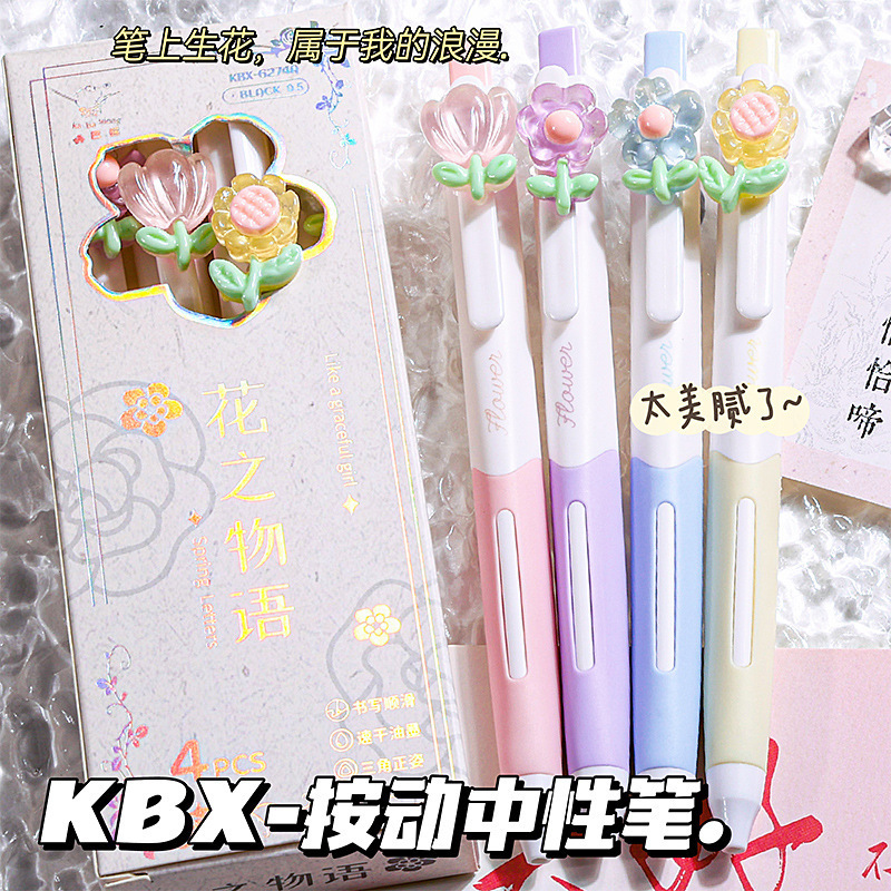 花の物語は中性筆ins風高颜値女子学生0.5水学生試験ブラシ問題黒筆ST速乾を押す