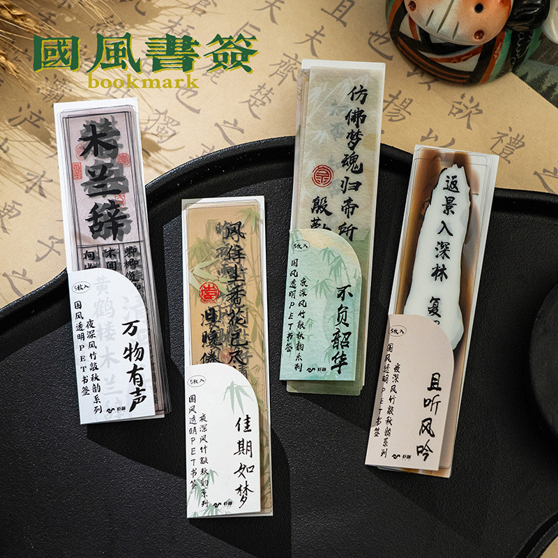 国風書道文字PET半透明しおり文芸ins詩語書画手帳素材カードプレゼント読書クリップ