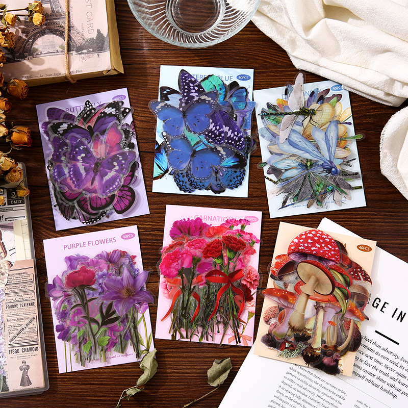 レトロ植物花卉シールPET防水子供貼り付け手帳日記装飾素材模様diy小貼り絵