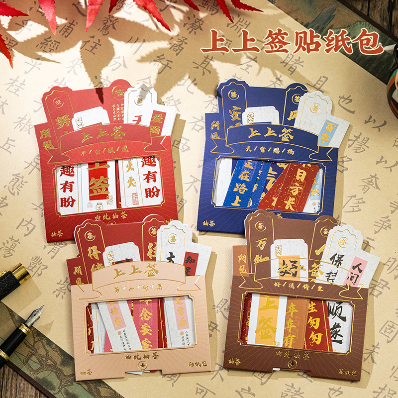 上サイン中国風箔押し書道文字祝福語シールinsタイル手帳diy携帯電話装飾貼り絵