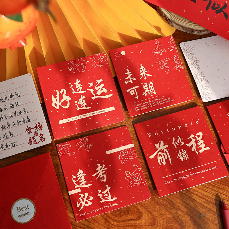 新年元旦中国風グリーティングカード復古風激励志文字祝福感謝感謝感謝空白小カード封筒付き