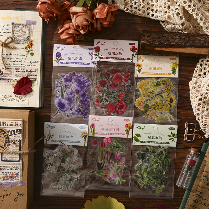 レトロ植物草花PVC防水透明手帳シールバッグ手帳日記帳装飾素材DIYステッカー