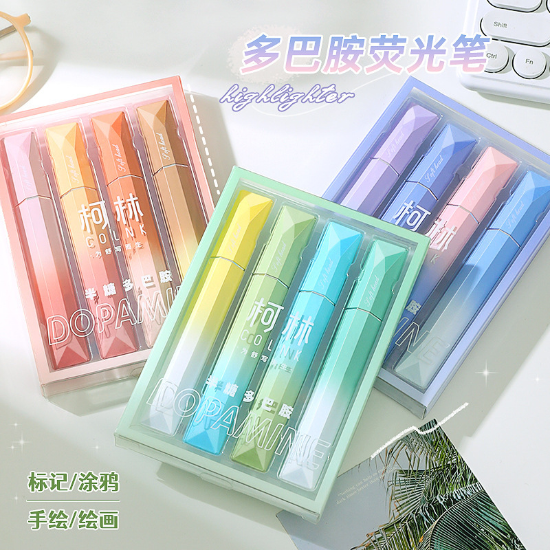 ドーパミン蛍光ペングラデーション色ソフトヘッド保護眼高颜値学生用大容量重点カラーマーカー