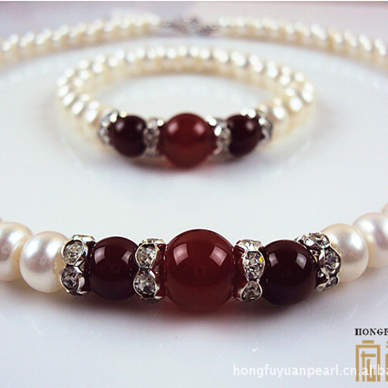 赤玉淡水養殖真珠ネックレスHFY-058アクセサリー卸売り宏福源ジュエリー