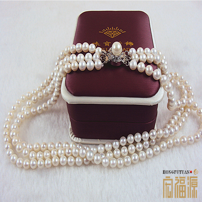 【店舗人気】淡水真珠3層チェーン真円真珠ネックレスHFY-061宏福源ジュエリー