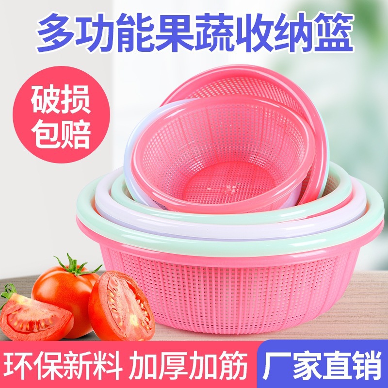 丸型厚手プラスチックバスケット、キッチン野菜洗いバスケット、中空野菜かご、水切りバスケット、小型家庭用細目収納バスケット